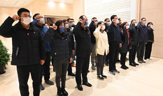參加活動的黨員干部員工在中共一大紀念館及會址認真聽取講解介紹,仔細觀看照片和實物展覽,全方位沉浸式地接受了黨性教育和思想洗禮。在宣誓區(qū),全體黨員面對黨旗,莊嚴重溫了入黨誓詞。
