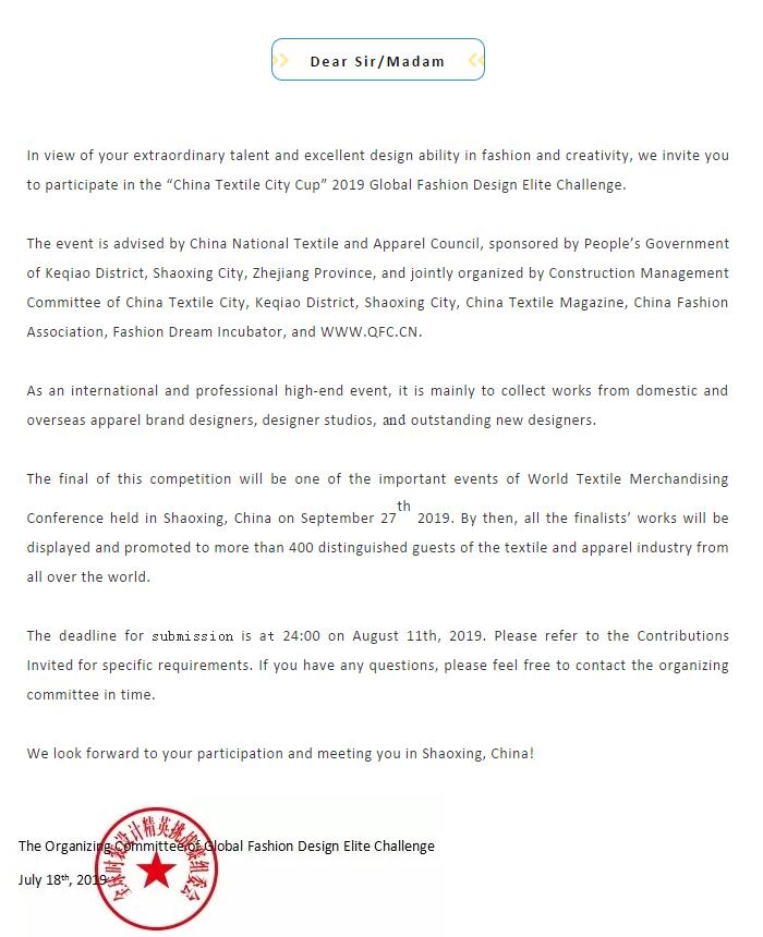 【Invitation】2019 Global Fashion Design Elite Challenge