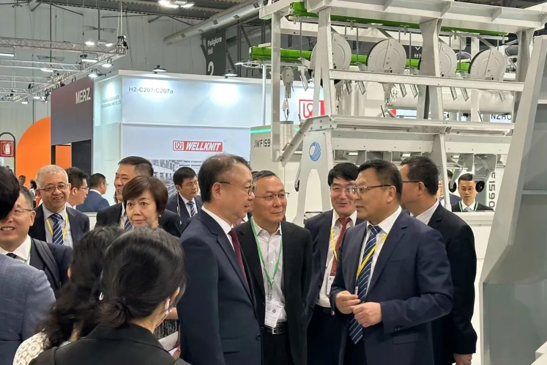 6月10日,代表團一行應邀參觀了歐洲國際紡織機械展(ITMA)。期間,孫瑞哲一行走訪了中國恒天、遠信工業(yè)、三技精密技術(shù)、慈星、歐瑞康、特呂茨勒、圣東尼、意達、蘭精、村田、必佳樂等企業(yè)展臺;調(diào)研最新紡織品和服裝加工技術(shù)、機械和材料;見證達利絲綢(浙江)股份有限公司和瑞士史陶比爾集團簽約。中國紡織機械協(xié)會會長顧平、中國國際貿(mào)易促進委員會紡織行業(yè)分會常務(wù)副會長梁鵬程等隨同參觀調(diào)研。