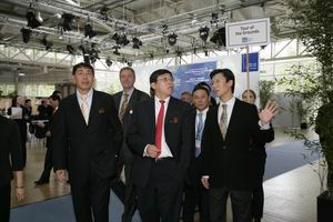陪同中華人民共和國駐法蘭克?傤I(lǐng)館總領(lǐng)事李海雁參觀展覽會