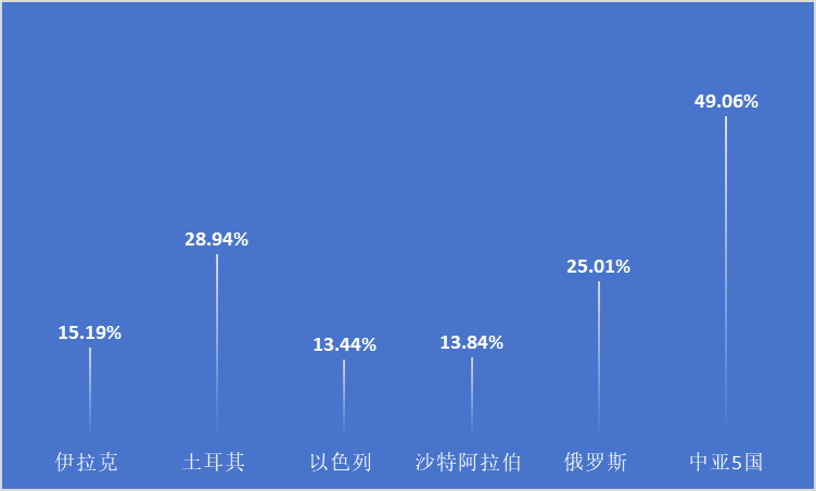 圖3. 2023年1-9月我國(guó)對(duì)共建“一帶一路”主要國(guó)家的家用紡織品出口增幅